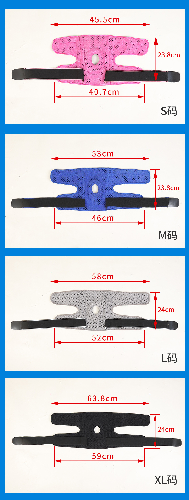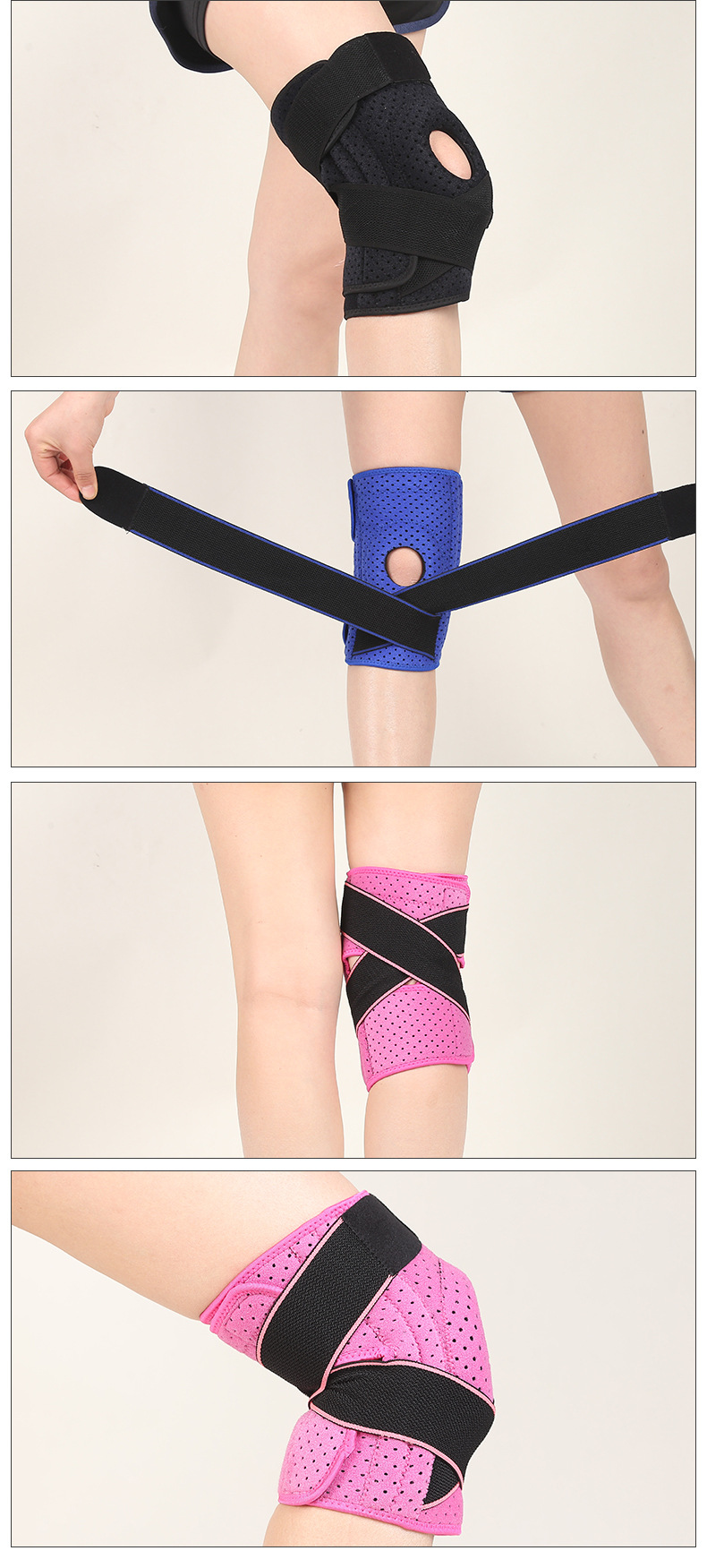 Compression Winding Strap Sports Knee Support Pad for Outdoor Riding L Size/Blue Strap 3ea