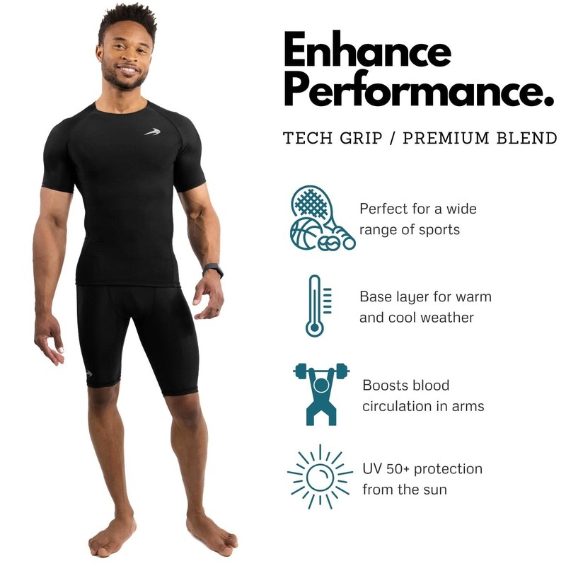 CompressionZ Men's Compression Shirt - Athletic Base Layer for Workouts Running Dry Fit Athletic Training Black 3X-Large