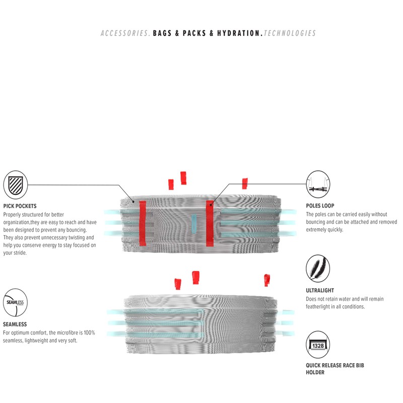 - PICK POCKET: Estructurados adecuadamente para proporcionar una mejor organización, estos bolsillos son fáciles de alcanzar y han sido diseñados para evitar el balanceo. También evitan contorsiones innecesarias y son ideales para ayudarle a mantenerse concentrado en su ritmo.