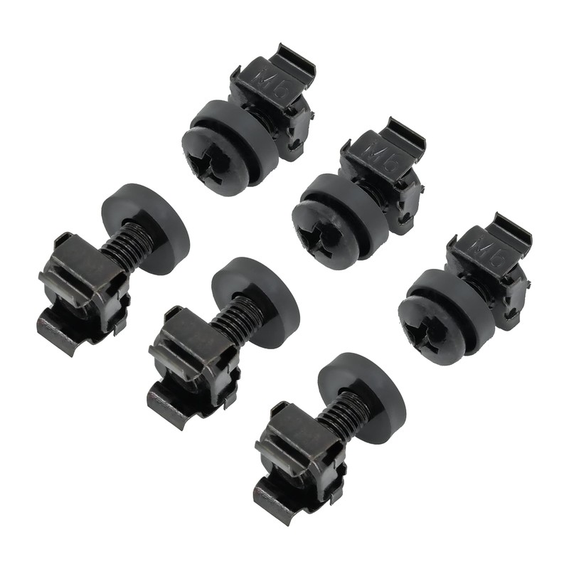 - Cage nut mounting set of 20: 20 x square M6 cage nuts, 20 x M6 plastic washers, 20 x M6 x 20 mm cross-head rounded head screws.