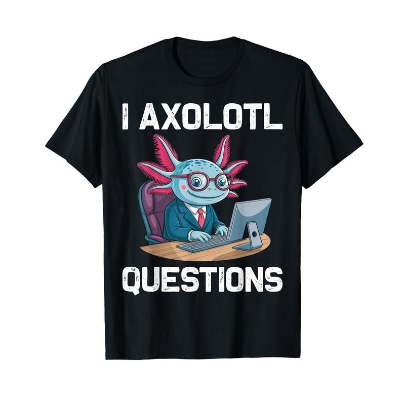 - Cute axolotl axolotl party favors tee featuring a cute axolotl setting on a computer desk and say "I Axolotl Questions". This cute axolotls gifts is awesome for axolotl lovers kids, boys, girls, men and women both.