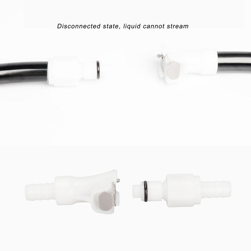 1、Connection Status: The check valve is in the open state, the liquid can stream, the disconnected state, the check valve is in the cut off state, and the liquid cannot stream. 2、Clamping Range: The pass through of the computer water stop quick Connector can clamp and fix the thickest 6.50mm sheet. 3、POM Material: Computer water cooling quick connector is made of POM material, which is strong and durable. 4、Easy to Use: The water cooling connector adopts a button type design, which is convenient and fast to plug and unplug. 5、Basic Parameters: The outer diameter of the pagoda is 7.2mm, 9.25mm, and 11.1mm, which can be connected to hoses with inner diameters of 6 to 6.5mm, 7 to 8mm, and 8 to 10mm, respectively.
