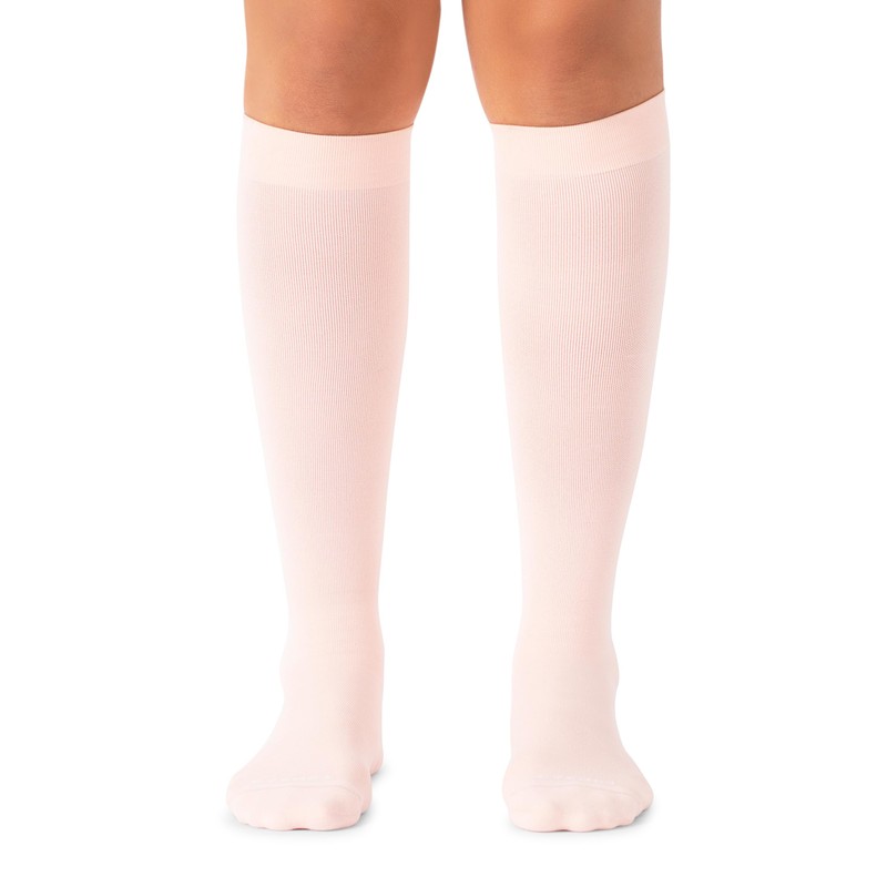 - All-Day Support: With 15-20 mmHg of True Graduated Compression, Comrad Nylon Knee-High Compression Socks offer all-day comfort. These compression socks for men and women promote circulation and help prevent sock odor with SmartSilver technology. Rose solid. 91% Nylon / 9% Spandex.