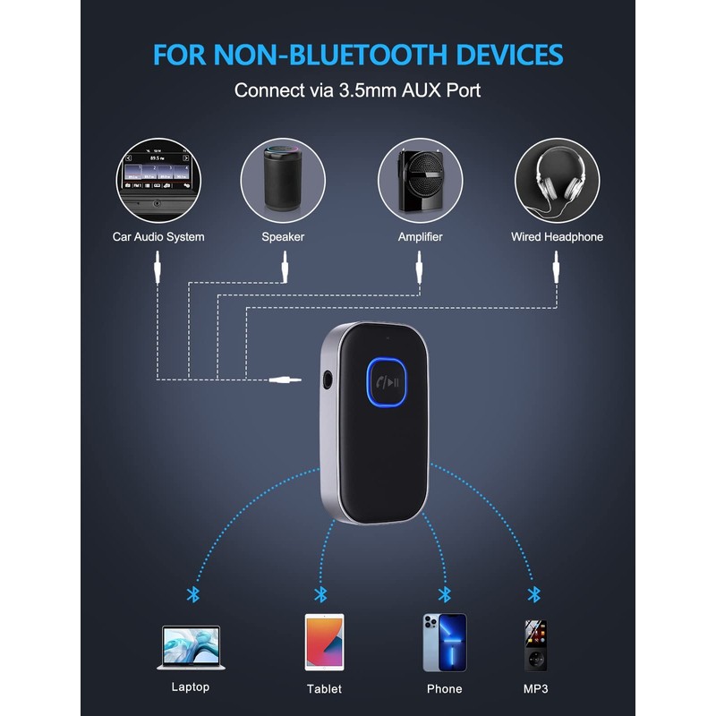 - 【Intelligent Noise Reduction Tech】Our Bluetooth audio receiver adopts the latest CVC8.0 Noise Cancellation and Digital Signal Processor (DSP) technologies, which can eliminate echo and block out intrusive background noise (such as wind, traffic, or crowds), providing you with crystal-clear calling sounds.