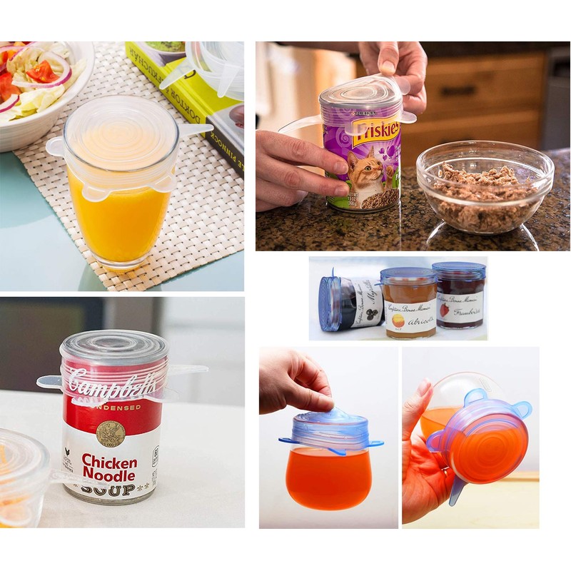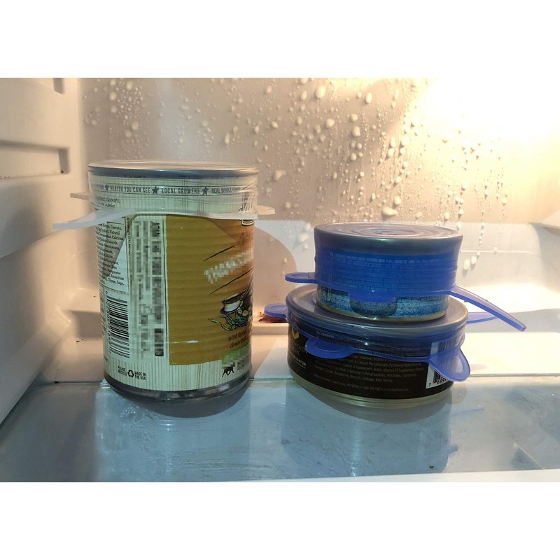 **Feature:** **1:** Due to the elastic and stretchable material, these stretch can lids can expand to fit many sizes of containers, and then contract to create a strong hold. **2:** These Can lids fit most canned dog and cat food, like small cans 3 oz, medium cans (5.5 oz, 5.8 oz, 6 oz) and large cans (12.5 oz, 12.7 oz, 13 oz, 13.2 oz, 14 oz) **3:** Not only fit for pet canned food, but also fit for many people's food cans such as soups and veggies, jar, cups... **4:** Ours have been thoroughly tested, These pet food can lids are made from a stronger material that won't tear or slip off **5:** Easy to clean and dishwasher safe