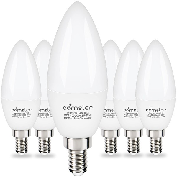 comzler Type B Small Light Bulb, Candelabra LED Light Bulb E12 Small Base 4000K Neutral White - 60watt Equivalent,600LM,Non-Dimmable Candelabra Bulbs, Pack of 6, Non-Dimmable