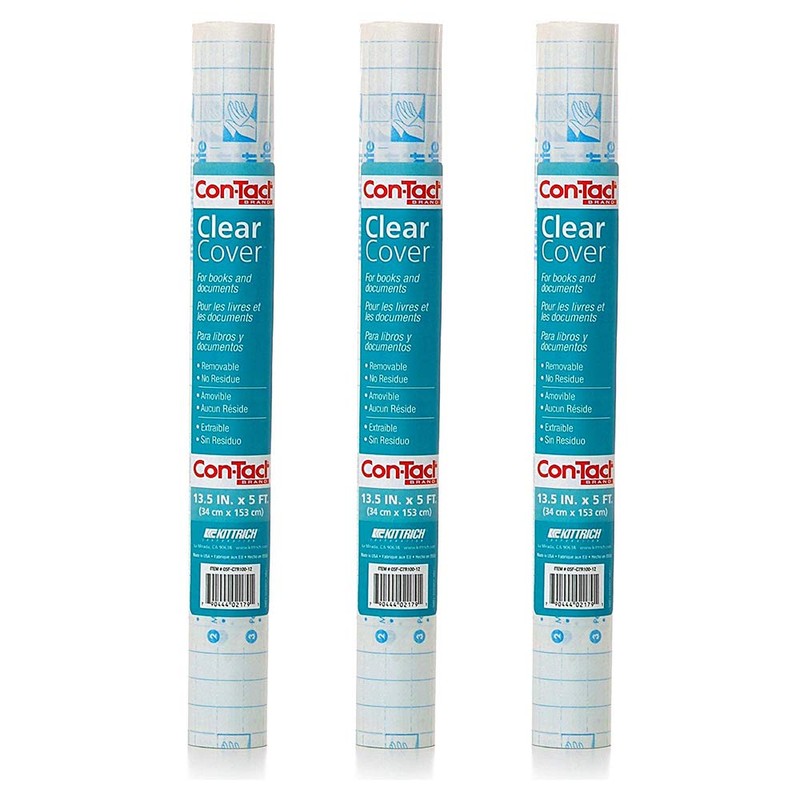 Con-Tact Brand Clear Adhesive Protective Liner to Cover Books and Documents, 13.5-Inches x 5-Feet (Pack of 3)