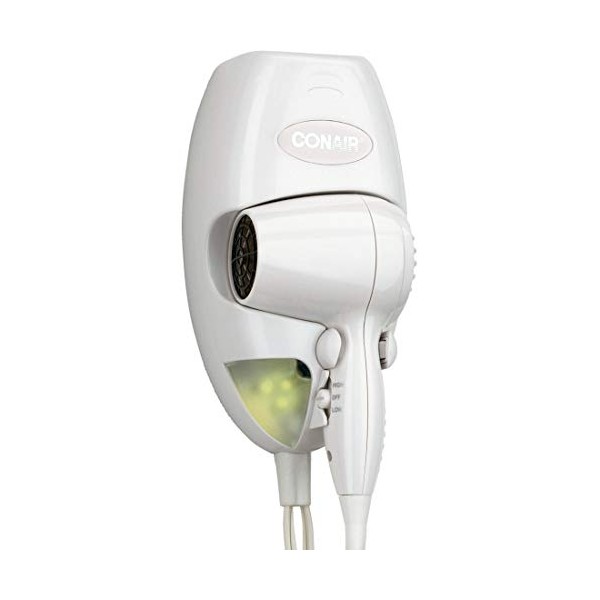 Conair 134W Mini Turbo White Wall Mount Hair Dryer with Nightlight - 1600W