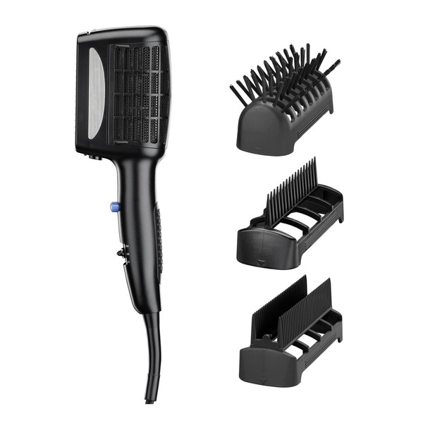 - Versatile Use: Includes three attachments for a variety of looks and styles: Bristle Styling Brush, Dual Row Straightening Comb and Wide Tooth Detangling Comb; Lock Button keeps attachments in place while styling