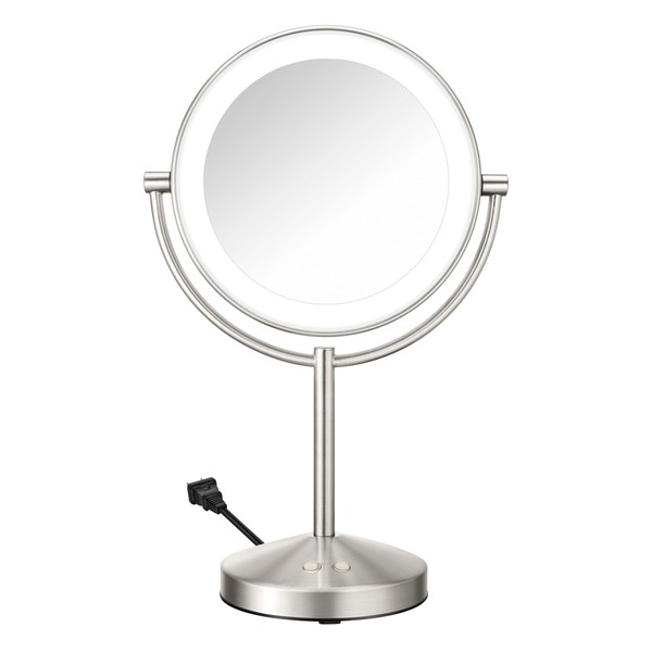 Conair Lighted Makeup Mirror, Double-Sided LED Vanity Mirror with 1X/10X Magnification, 3 Light Settings, 3 Modes, 360° Rotation, Satin Nickel Finish
