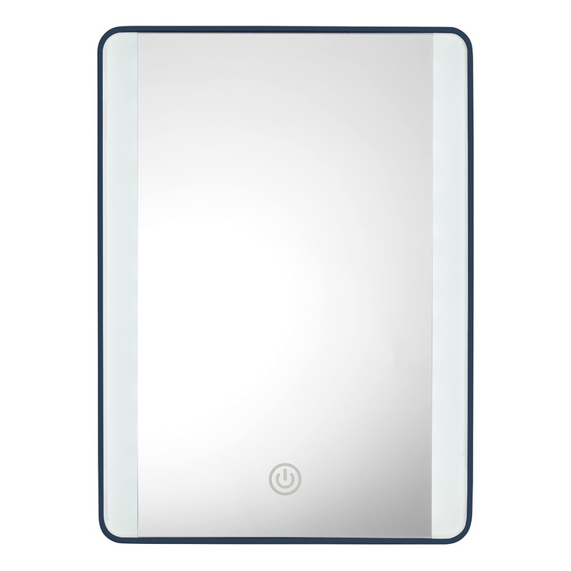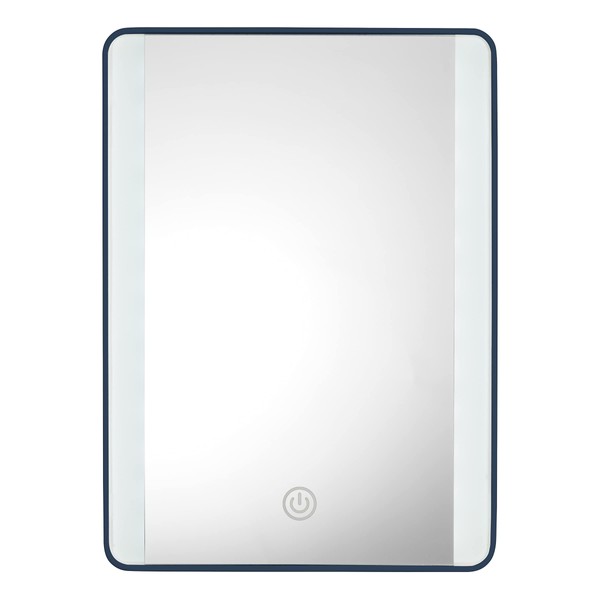 - Stylish Surroundings: This 8.9" x 6.5" rectangular mirror features a glossy navy finish that compliments any decor. The touch-screen On/Off button located on the face of the mirror features 3 light settings: low, medium, and high.