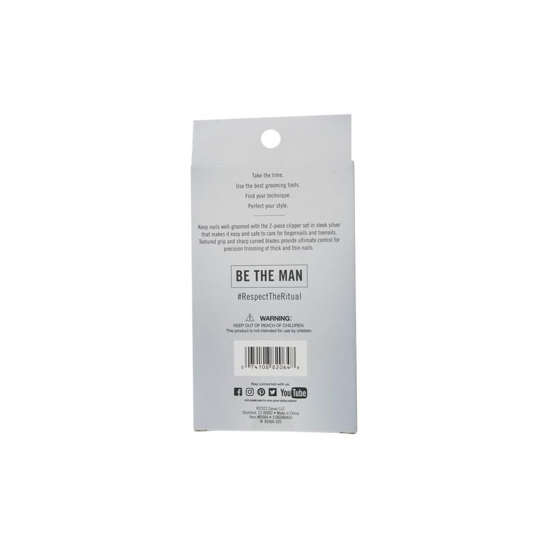 Conair Man Precision Nail Clipper Set – Stainless Steel Grooming Kit for Fingernails & Toenails, Textured Grip for Control, Sharp Curved Blades, Durable & Rust-Resistant, 2-Piece Set, Silver
