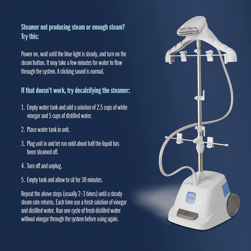 - Upright Steamer: The professional 1875 watt steam generator in this fabric steamer powers away wrinkles and has an innovative multi-garment hanger, ideal for clothing, linens, drapes, and bedding.