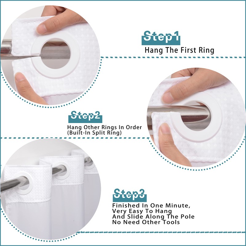- SUPER EASY TO INSTALL : This shower curtain design with High Quality Flex On Rings that you can very easy to install it in one minute, smart design will made it easier to hang and slide along the pole.