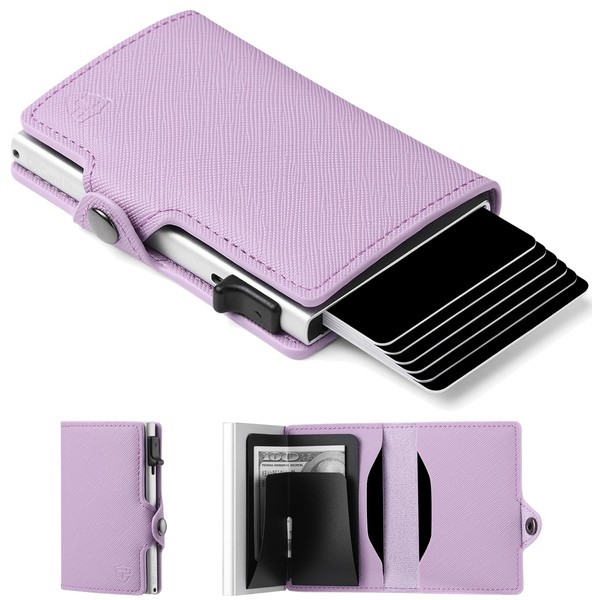 **This is a minimalist wallet if you can't use a large amount of cash, cards, etc. Please note that depending on the type of cards this wallet, the actual capacity of the wallet is used. RFID protector holds 4 embossed cards or 6 flat cards. Inside leather pocket with several and another 4-6 cards will be charged by pressing down on the bill holder. RFID WALLET - Best RFID Blocking Technology for RFID Scan Thieves and Electronics Pick Pocket Access Peronsal's Financial Information & ID. 100% Blocking Metal Credit Card Sleeve RFID Scanner Single click action trigger action & credit card slide cascade sleeves securely hold Most importantly, quick and easy access card & ID. Wallet wallet for men and women, look the whole without research.
