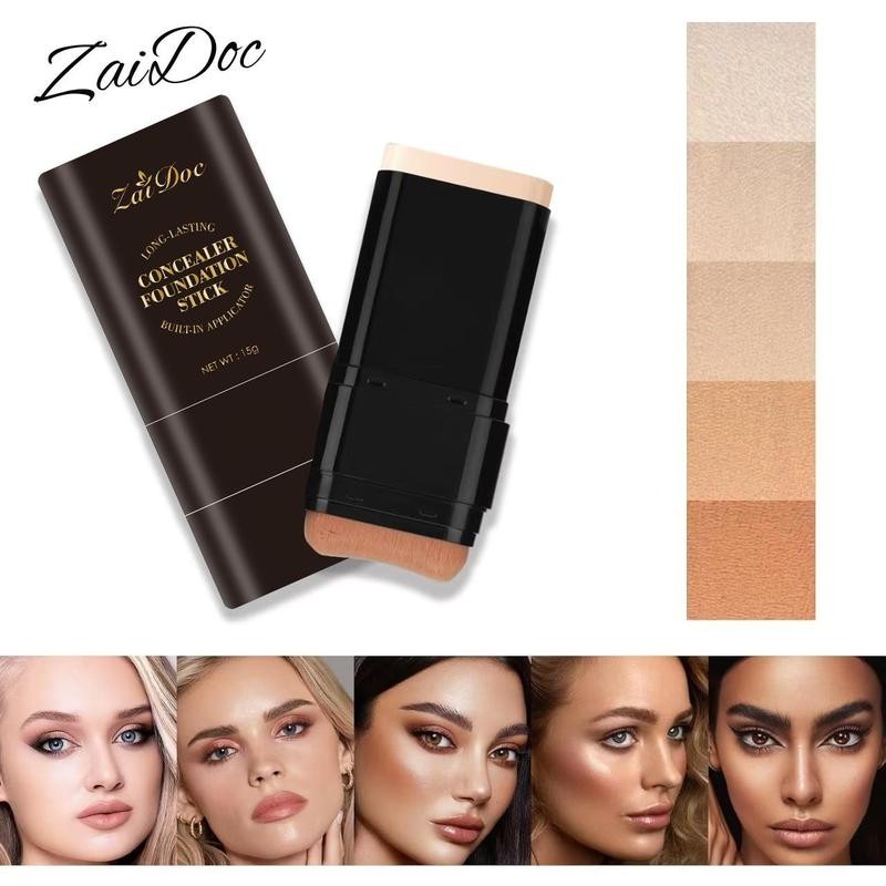 Concealer Foundation Stick - 15g Compact Makeup Tool with Dual Brush Heads for Flawless Skin Finish & Moisturizing Brightening Effects Effortless Complexion Sculpting Cosmetic:_zaidoc-03#LIGHT SKIN