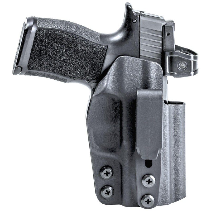 - EXCLUSIVE HOLSTER FEATURES: Undercut Trigger Guard keeps the KYDEX from interfering with your draw. Over-Cut Open-Face accommodates Threaded Barrels and clears Suppressor Height Sights. Full Length Sweat Guard & Rear Sight Shield to protect your weapon from sweat. Fiber Reinforced Stealth Belt Clip, so no one knows you are carrying. We utilize all Black Oxide Steel (Phillips) hardware with Threadlock, so you can easily make adjustments but never lose a screw.