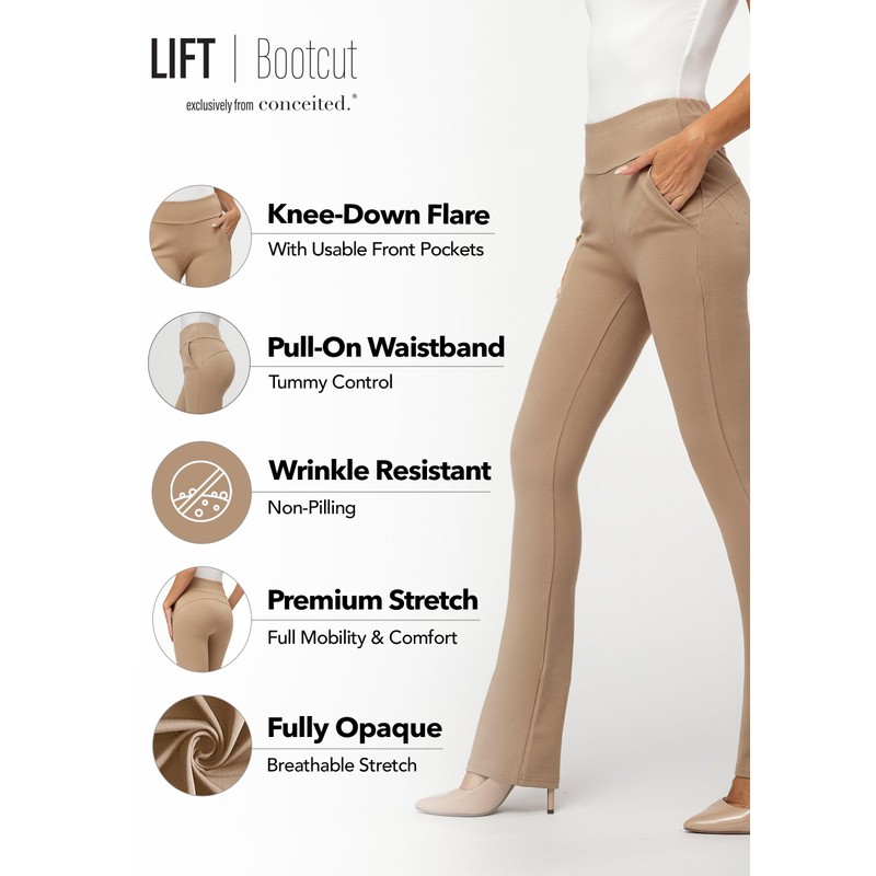 Conceited Dress Pants Women - Stretchy - Tummy Control - All Day Comfort Wear to Work - Womens Dress Pants in Tall and Petite - Regular and Plus Size - Beige Nude - Large
