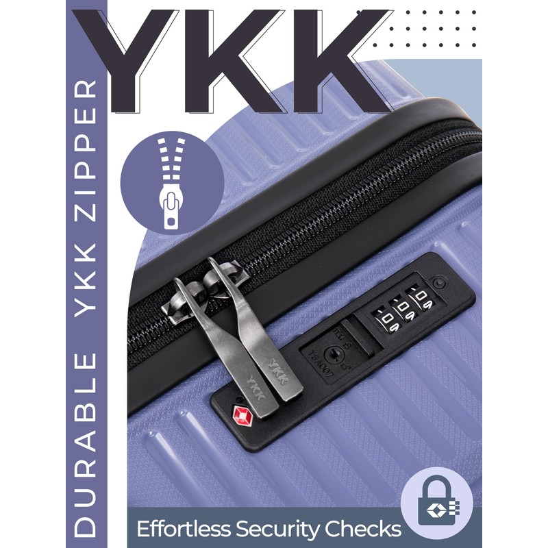 - YKK Zipper & Telescoping Handle - We can easily open and close the luggage sets without worrying about the zipper getting stuck or damaged. The 3-section telescopic handle allows you to easily hold the suitcase set without getting tired even on long walks.