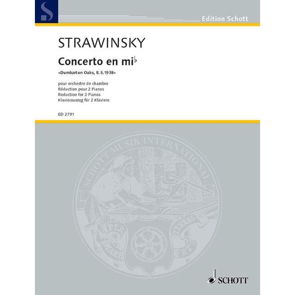 Concerto in E flat "Dumbarton Oaks": for chamber orchestra. 2 pianos (4 hands). Réduction pour piano.