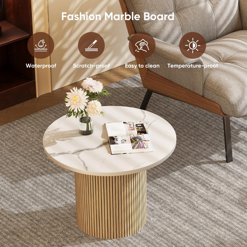 • Stable and Sturdy - The marble coffee table base adopts a solid MDF wood structure, no odor, good stability, and the load-bearing capacity of a single coffee table is up to110 pounds. Equipped with a bottom anti-skid pad, it can effectively prevent the floor from being scratched, making the center table stable and not easy to slide and shake, bringing a more comfortable experience