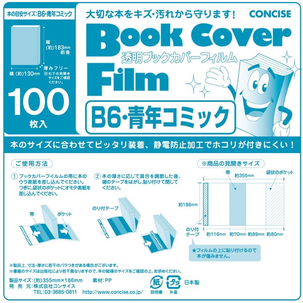 Concise 134435 Book Cover, Transparent Film, Set of 100, B6, Youth Comics