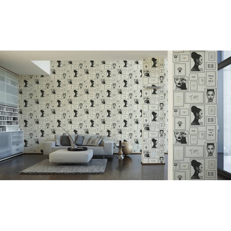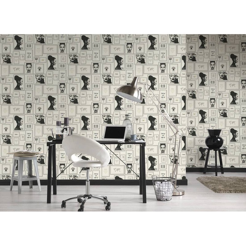 CONCORD WALLCOVERINGS Sample for Display Purpose only Deco Motive Modern Textured Wallpaper Featuring Pictures and Quotes in Frames, Black Gold Metallic Silver White, 7" x 10 "; 369182