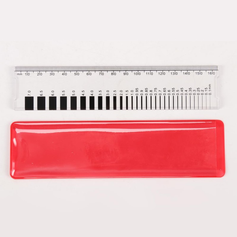 - Standard Crack Gauge Width Ruler Including 31prection crack widths (mm): 0.1, 0.15, 0.2, 0.25, 0.3, 0.35, 0.4, 0.45, 0.5, 0.55, 0.6, 0.65, 0.7, 0.75, 0.8, 0.85, 0.9, 0.95, 1.0, 1.5, 2.0, 2.5, 3.0, 3.5, 4.0, 4.5, 5.0, 5.5, 6.0, 6.5, 7.0.
