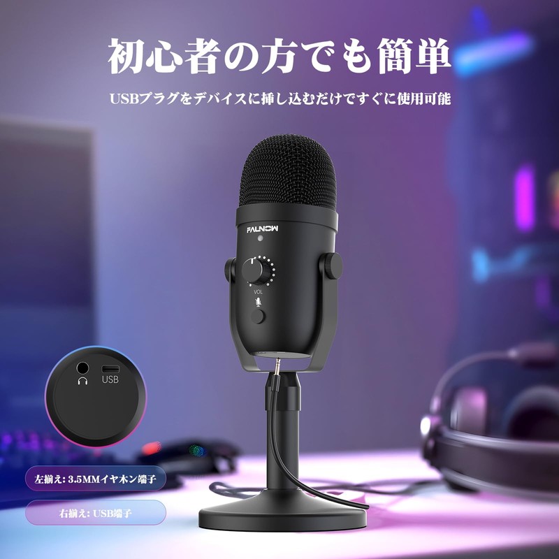 Condenser Microphone, USB Microphone, PC Microphone, Unidirectional, Mute Button, Noise Reducing, Desktop Microphone Stand, Gaming Microphone, LED Indicator Light, Volume Control, Supports Windows,