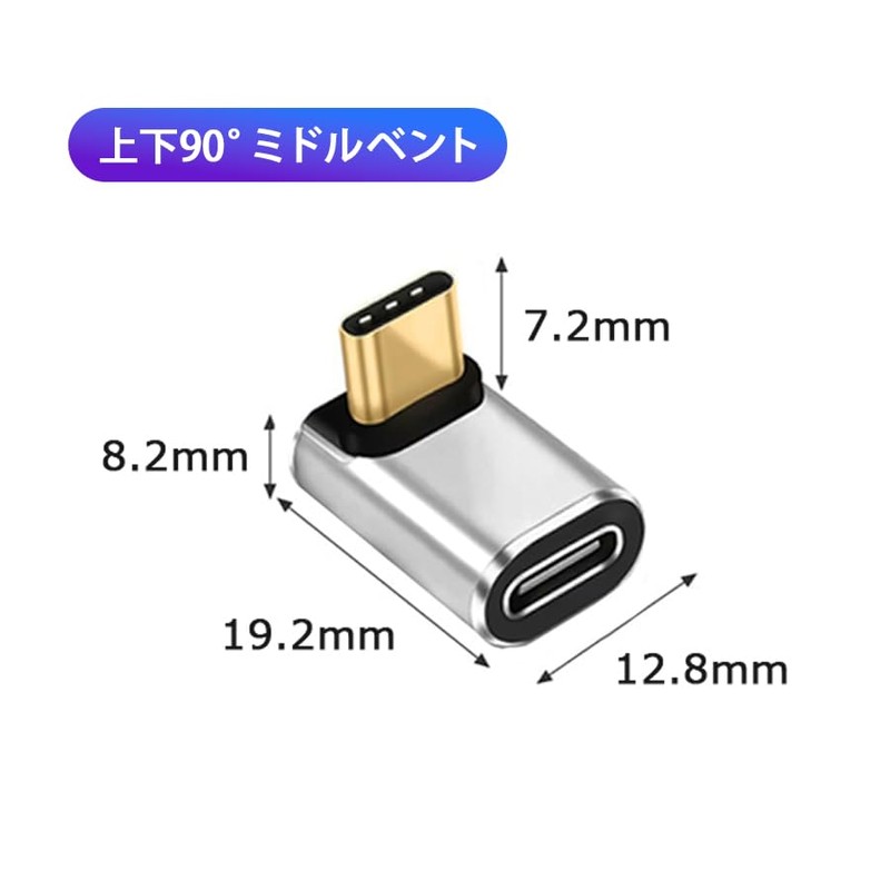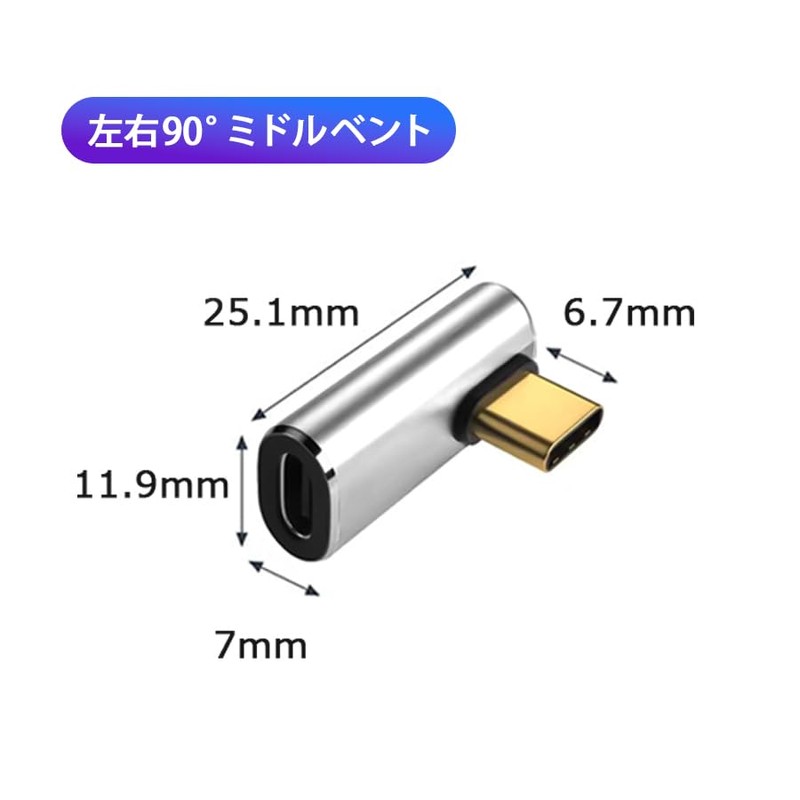 - USB-C 90 Degree Conversion Adapter: USB connector to Type C male to female 90 degree adapter