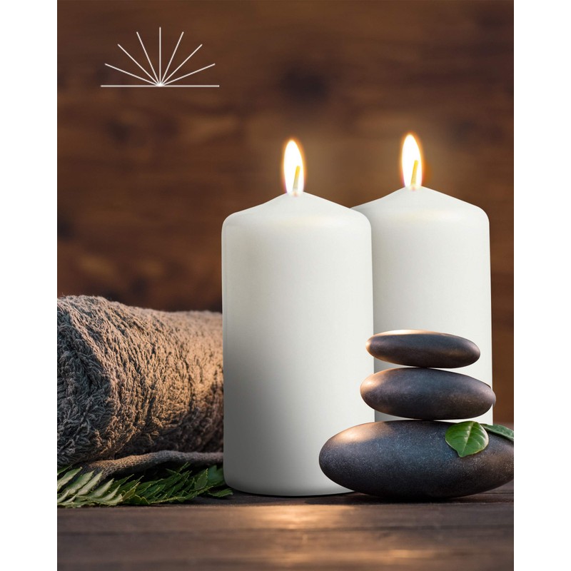 - Our 6" tall pillar candles instantly brighten your space with warm light and elegant color.