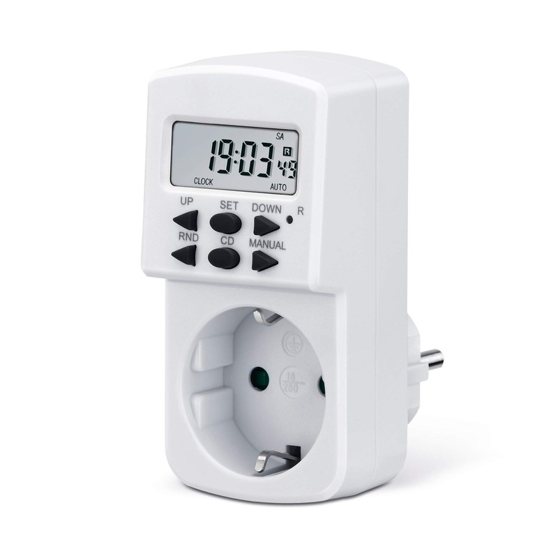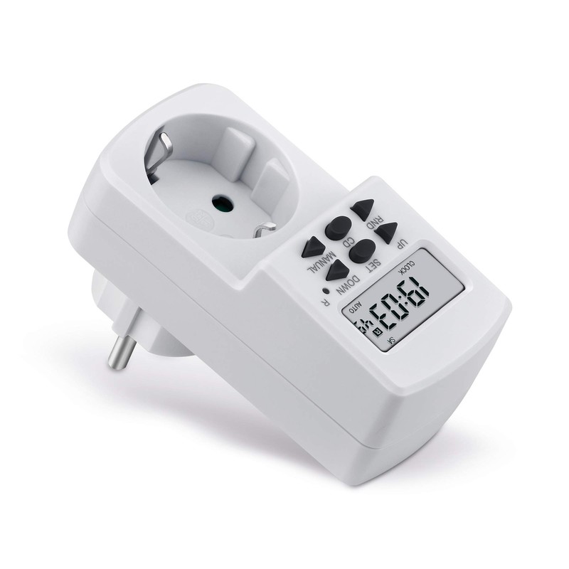 - Comprehensive settings: 10 configurable switching programs, random function in intervals, manually selectable ON, AUTO and OFF, summer time adjustable, 12/24 hour mode selectable, 16 different combinations of the days of the week adjustable
