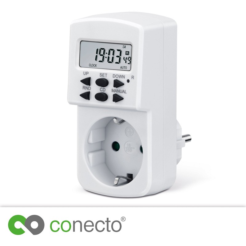 - Digital display: the digital timer from conecto with LCD display is characterised by a high level of comfort, easy operation and maximum safety for your household.