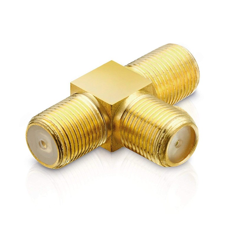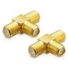 conecto Satellite Tee 1 x F Female to 2 x F Female T Splitter for Satellite Wiring Gold Plated (Pack of 2)