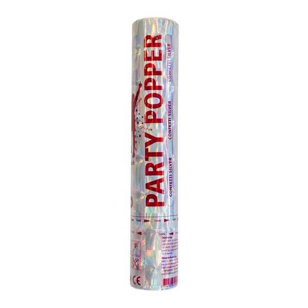 Confetti Cannon 28cm Silver Foil Shapes, Compressed Air Popper Cannon