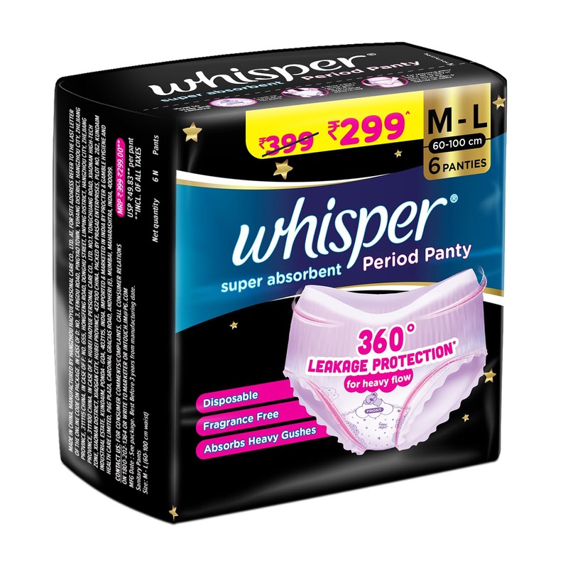 CONFETTIWOW Whisper Bindazzz Night Period Panty|6 M-L Panties|upto 0% Leaks|360 degree leakage protection|Full back coverage|Suitable for Heavy Flow|Flex fit|Soft & comfortable|With disposable wrap