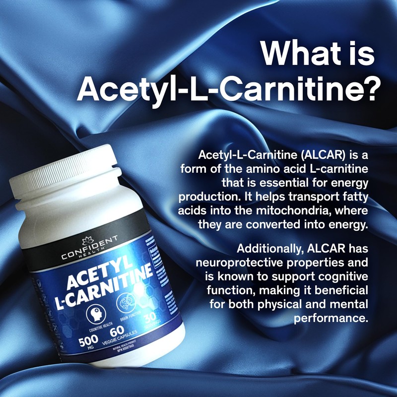 CONFIDENT HEALTH - Acetyl L-Carnitine 500mg - Premium Brain and Energy Support Supplement – 60 Veggie Capsules – Gluten Free – 30 Servings – One Month Supply