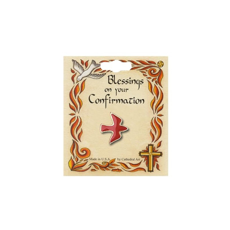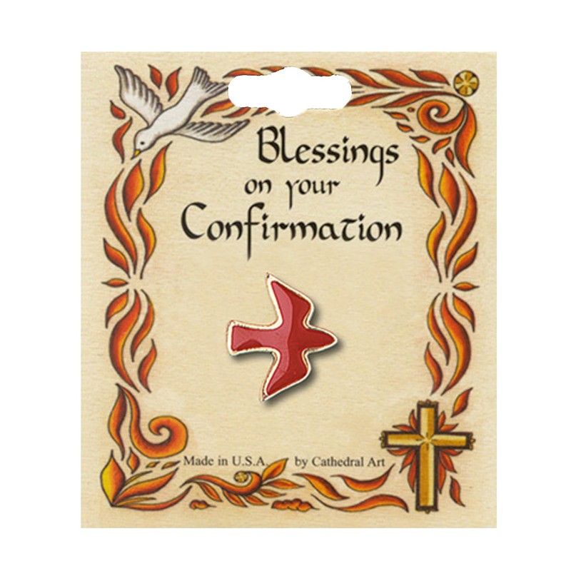 Confirmation Day Lapel Pin Brooch - Red Dove with Gold Edge