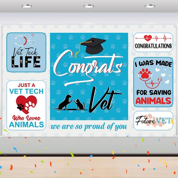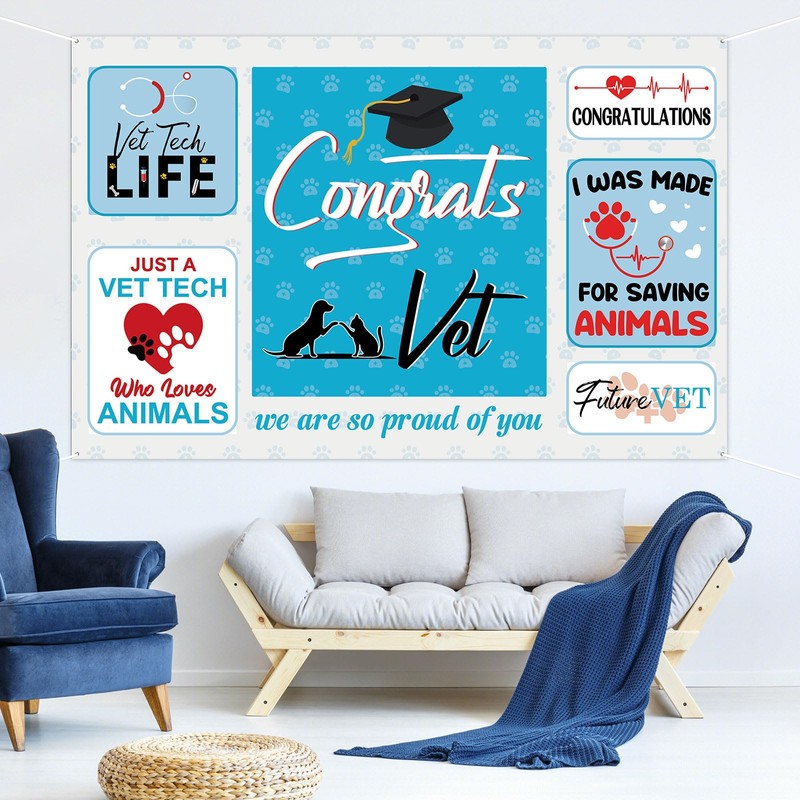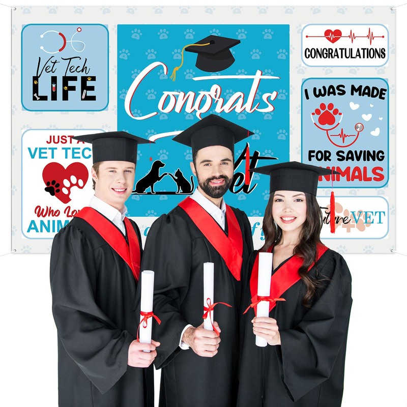 Congrats Vet Backdrop Banner - Doctor Grad Graduation Party Background - Med School Veterinarian Graduation Party Photography Background Decoration - 6 x 4 Feet