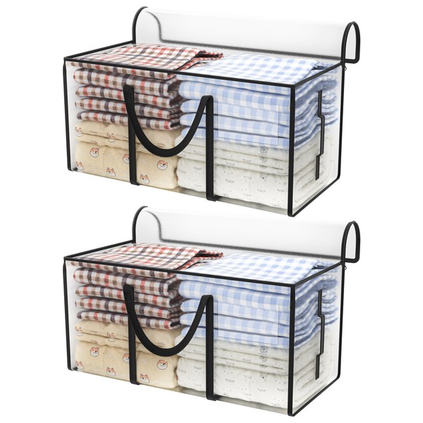 - 2 PACK 97L LARGE CLOTHES STORAGE BAGS: Each clear storage bags with zipper measures 28.7 x 15 x 13.7 inches, our large clear plastic bags storage containers capacity is 97L, large capacity, which is moisture-proof and dust-proof to keep clothes clean. There's plenty of spacious for your sweater linen organizing, blankets, sheets, quilts, pillows, bedding, toy, baby clothes storage organization etc, save space