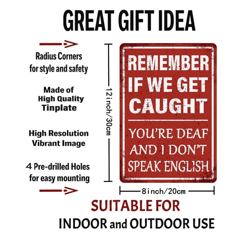- MAKES A PERFECT GIFT: Funny metal sign is a perfect gift for all occasions, Made with High-quality METAL, These metal signs are Waterproof, Colorfast and Easy to clean. Our Funny tin signs will delight your family, colleagues and friends.