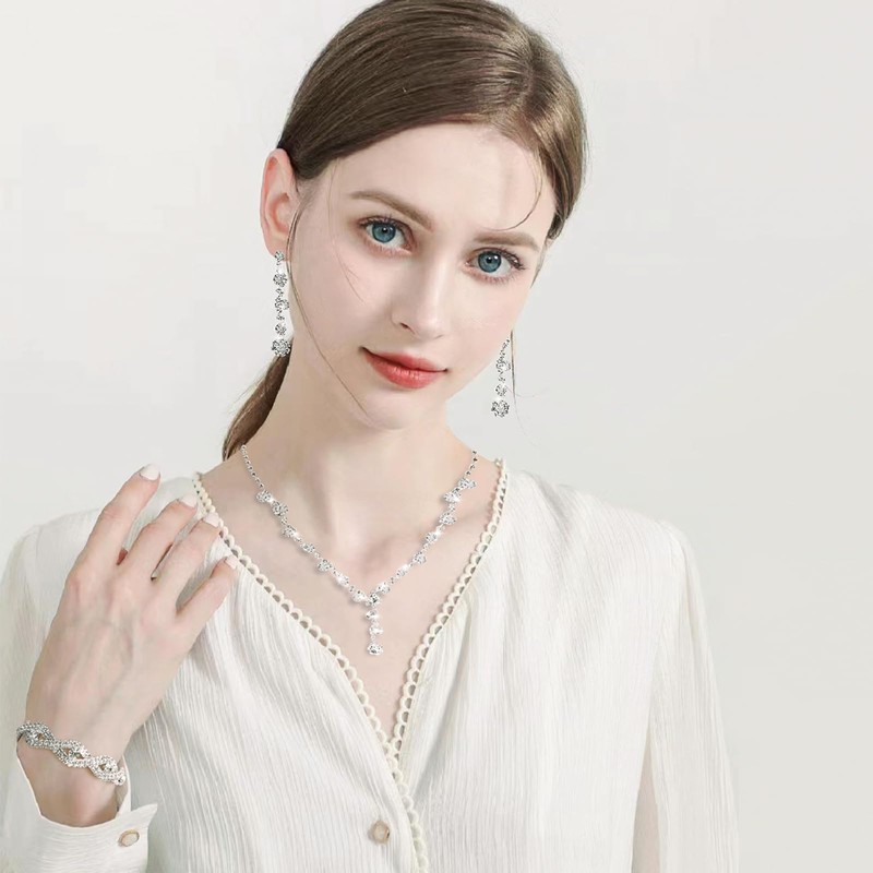- 【FORMAL ACCESORIOS MUJER JOYERIA】 - Collar, pendientes y pulsera elegantemente combinados para ocasiones formales. Combinan perfectamente con trajes de noche, vestidos de novia, etc. para mostrar su extraordinario gusto. Una elección perfecta para compromiso, boda, baile de graduación y otras ocasiones, haciéndole destacar entre la multitud. También es adecuado para citas y celebraciones, añadiendo brillo a cada momento. Elíjalo y brille con confianza en todo momento.