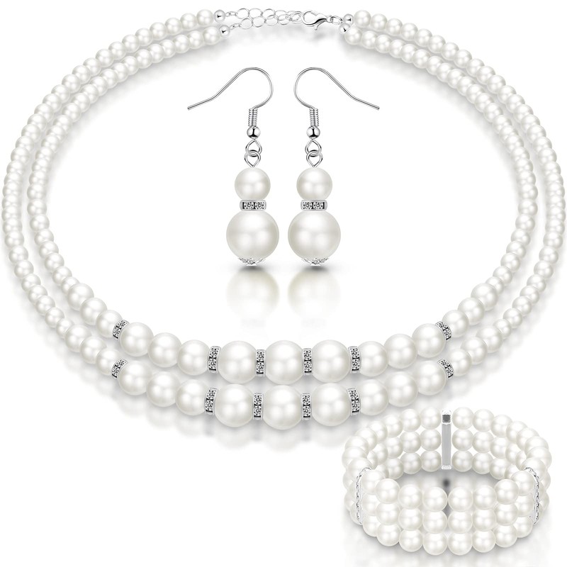 - Regalos memorables: el collar de perlas artificiales, pulsera de perlas de revestimiento múltiple y aretes de perlas de abalorio se pueden enviar a tu hija, novia, esposa, amigos o familia en el día de la madre, día de San Valentín, Navidad, cumpleaños y otras ocasiones importantes, los delicados regalos los harán felices y conmovidos