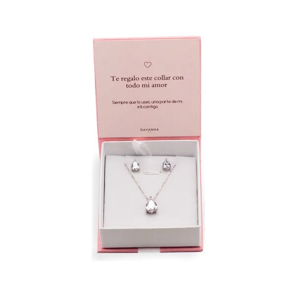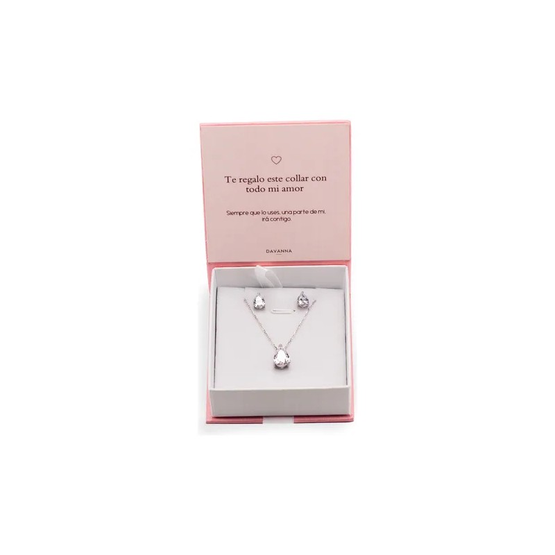 Conjunto Dije De Gota Davanna Set Collar Y Aretes Plata 925