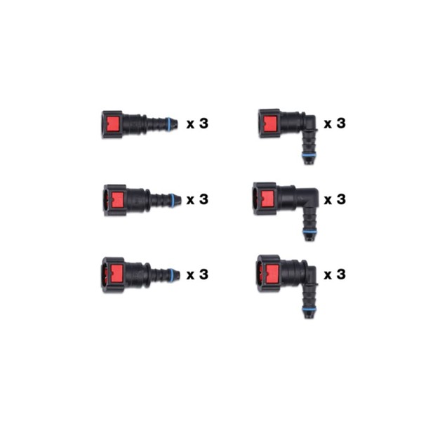 - 90° angled connectors for AdBlue, sizes: 9.49mm x 6mm, 7.89mm x 6mm & 6.3mm x 6mm.