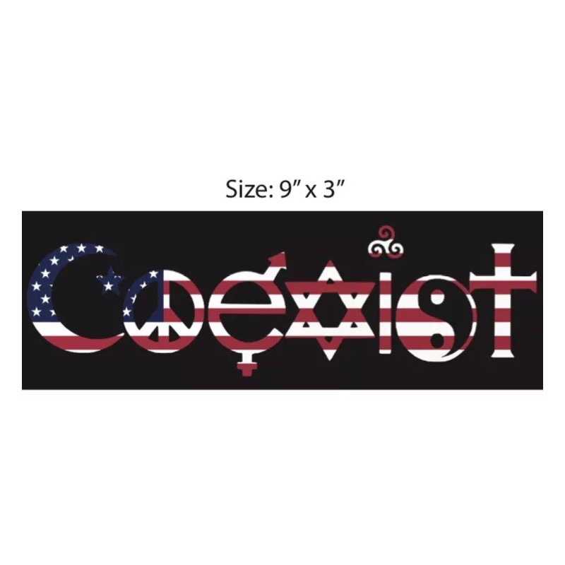 COEXIST Sticker Peace Black Background Usa Flag Bumper Window Large 9”x3” Vinyl. Condition is New.