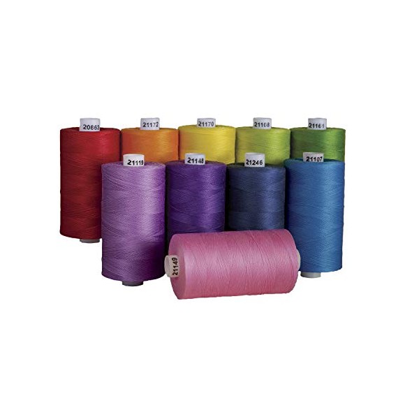 • SET OF 10: This 10-Pack features 1,200 yard spools of 50-weight thread made from three plies of 100% cotton.