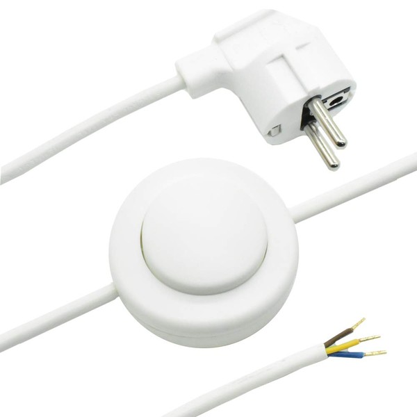 - Product: Robust 4.00 m long, white connection cable with plastic earthing contact angle plug (CEE 7/7) and integrated foot switch ON/OFF. Ideal for safe and comfortable use of electrical appliances and lights indoors, ready for connection and reliability.