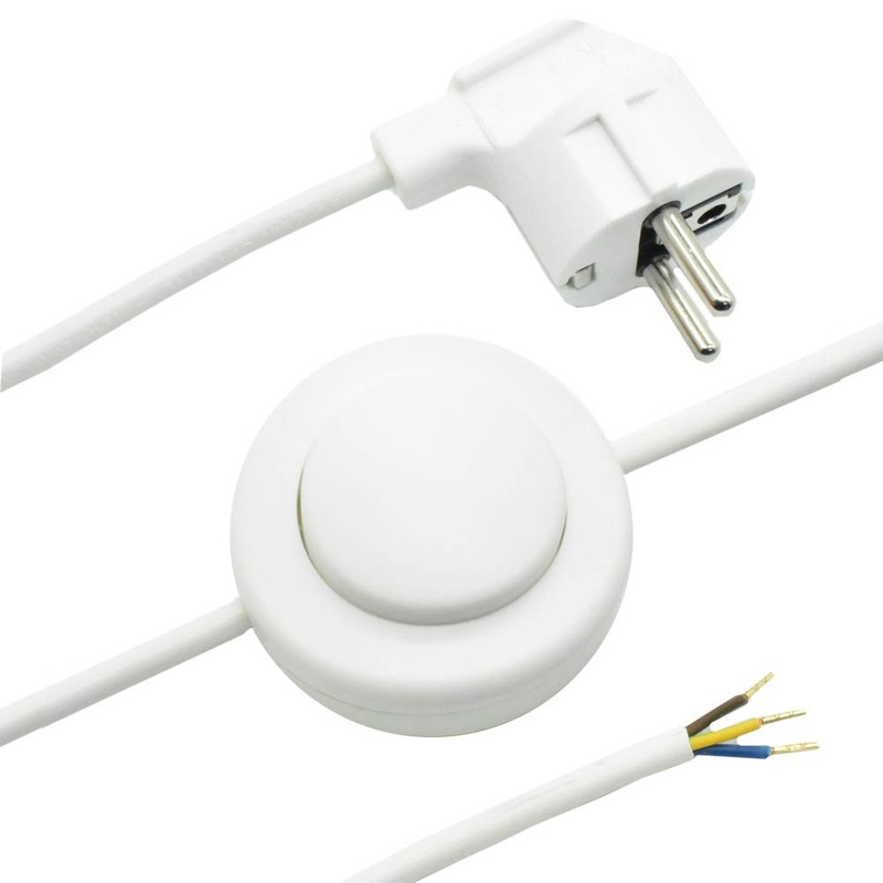 Connection Cable 4 m White Earthing Contact Angle Plug + Foot Pedal Switch Connection Cable 3 x 0.75 mm² 250 V Ready for Connection Plug Lead for Lamps