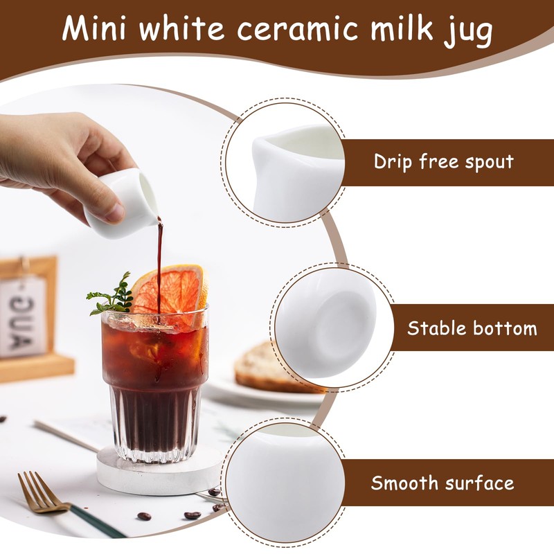 - 【Package Includes】: You will receive 6 pcs white without handle small milk jug, measures 5 x 3.5 x 3.5 cm, capacity 50 ml. Sufficient quantity is enough to meet your various needs.